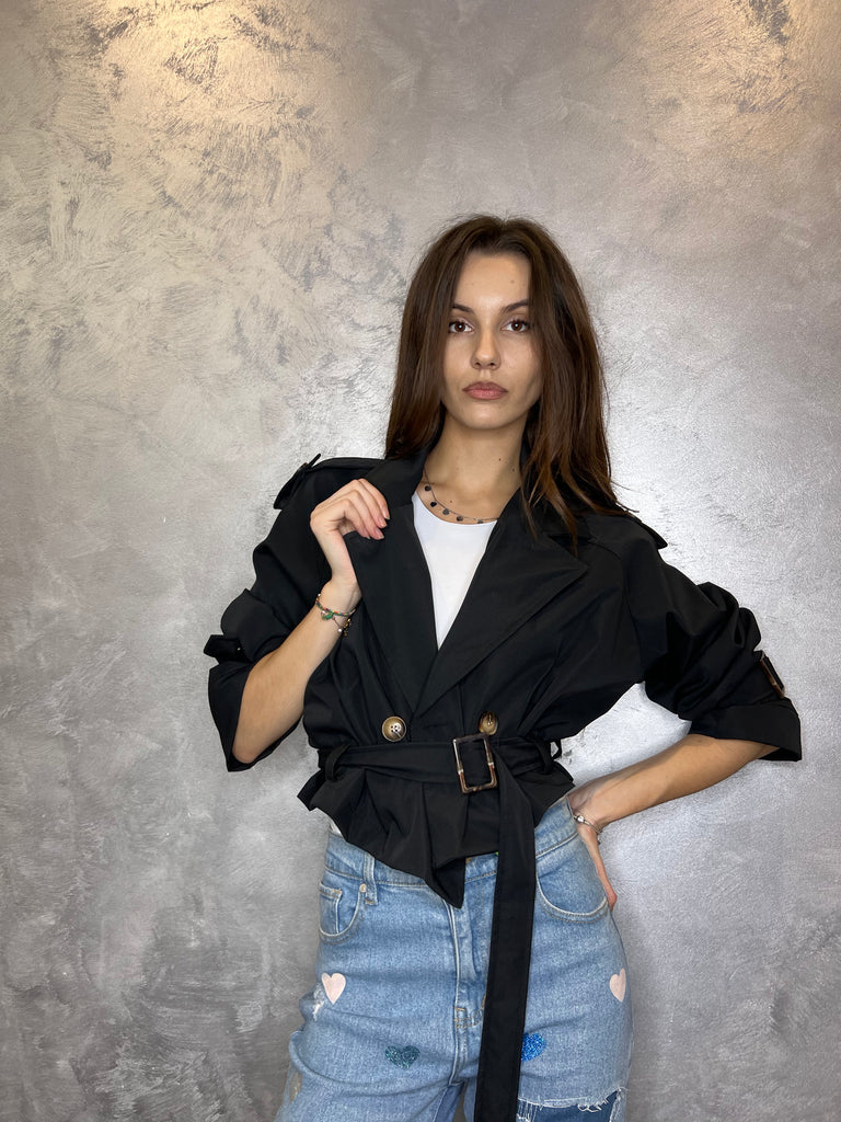 Trench corto con cintura in vita e cinturini ai polsi. Taglia Unica ( veste dalle XS alla L)