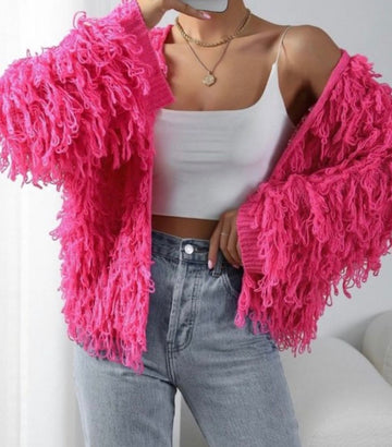 Cardigan in lana con frange. Senza bottoni o zip. Taglia unica ,veste dalla XS alla L..