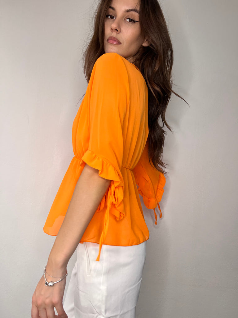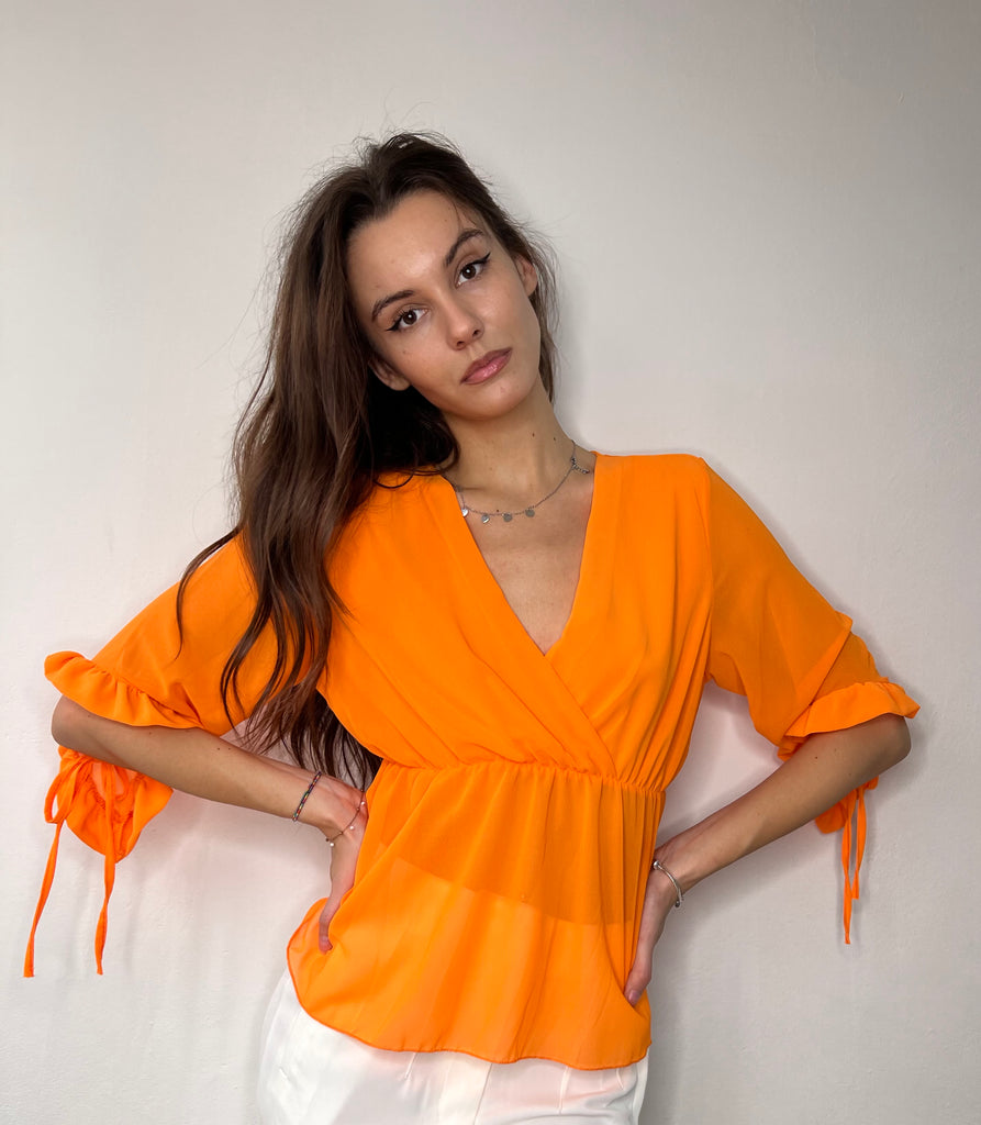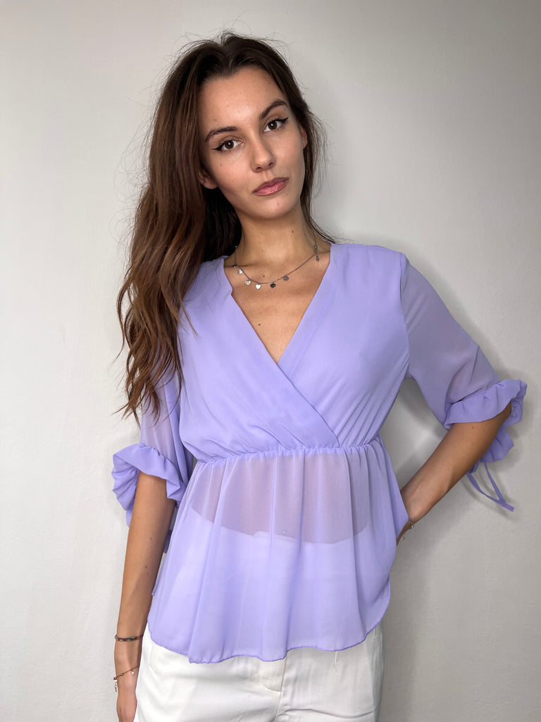 Blusa con trasparenze,copre perfettamente il seno. Taglia Unica (veste XS-S-M).