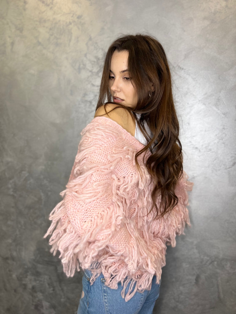 Cardigan in lana con frange. Senza bottoni o zip. Taglia unica ,veste dalla XS alla L..