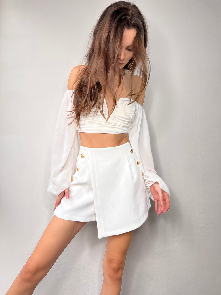 Pantagonna a portafoglio , elasticizzato in vita con finte tasche e bottoni dorati laterali. Taglia Unica (veste XS-S-M)