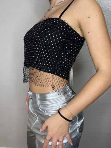 Canotta crop con strass